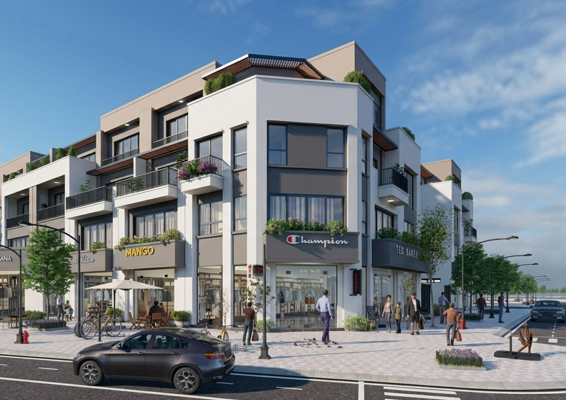 Khu đô thị gây ấn tượng mạnh bởi ngôn ngữ thiết kế hiện đại với những hình khối vuông vắn, khỏe khoắn được sắp đặt đầy ngẫu hứng. Sự kết hợp giữa tông màu trắng thanh lịch và xám trung tính tạo nên một diện mạo tinh tế, bắt kịp xu hướng kiến trúc bền vững. Những mảng đặc rỗng được tính toán kỹ lưỡng thông qua hệ cửa kính lớn và các khoảng lùi ban công, không chỉ tối ưu hóa ánh sáng tự nhiên mà còn tạo nên chiều sâu nghệ thuật cho toàn bộ công trình ngay từ cái nhìn đầu tiên.