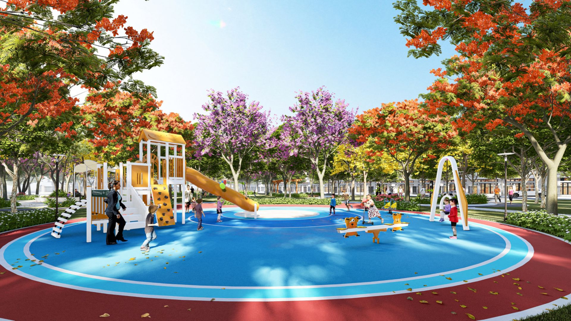 Khu đô thị Thị trấn Cái Nước là sự giao thoa tinh tế giữa sắc màu rực rỡ của thiên nhiên và những tiện ích hiện đại. Từ không gian quảng trường rực sáng ánh đèn đến những cung đường dạo bộ uốn lượn dưới những tán cây, tất cả tạo nên một hệ sinh thái sống động. Điểm nhấn là khu vui chơi trẻ em đa sắc màu và các khoảng mở hướng hồ, mang đến một không gian thư giãn, kết nối cộng đồng hoàn hảo và ngập tràn sức sống.