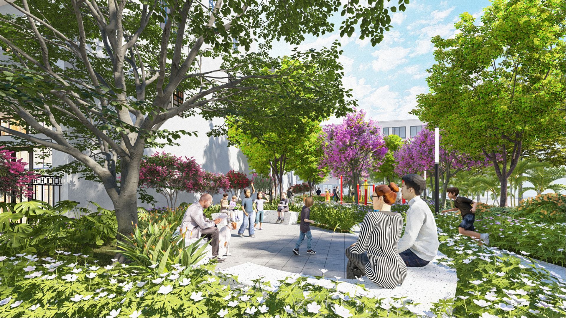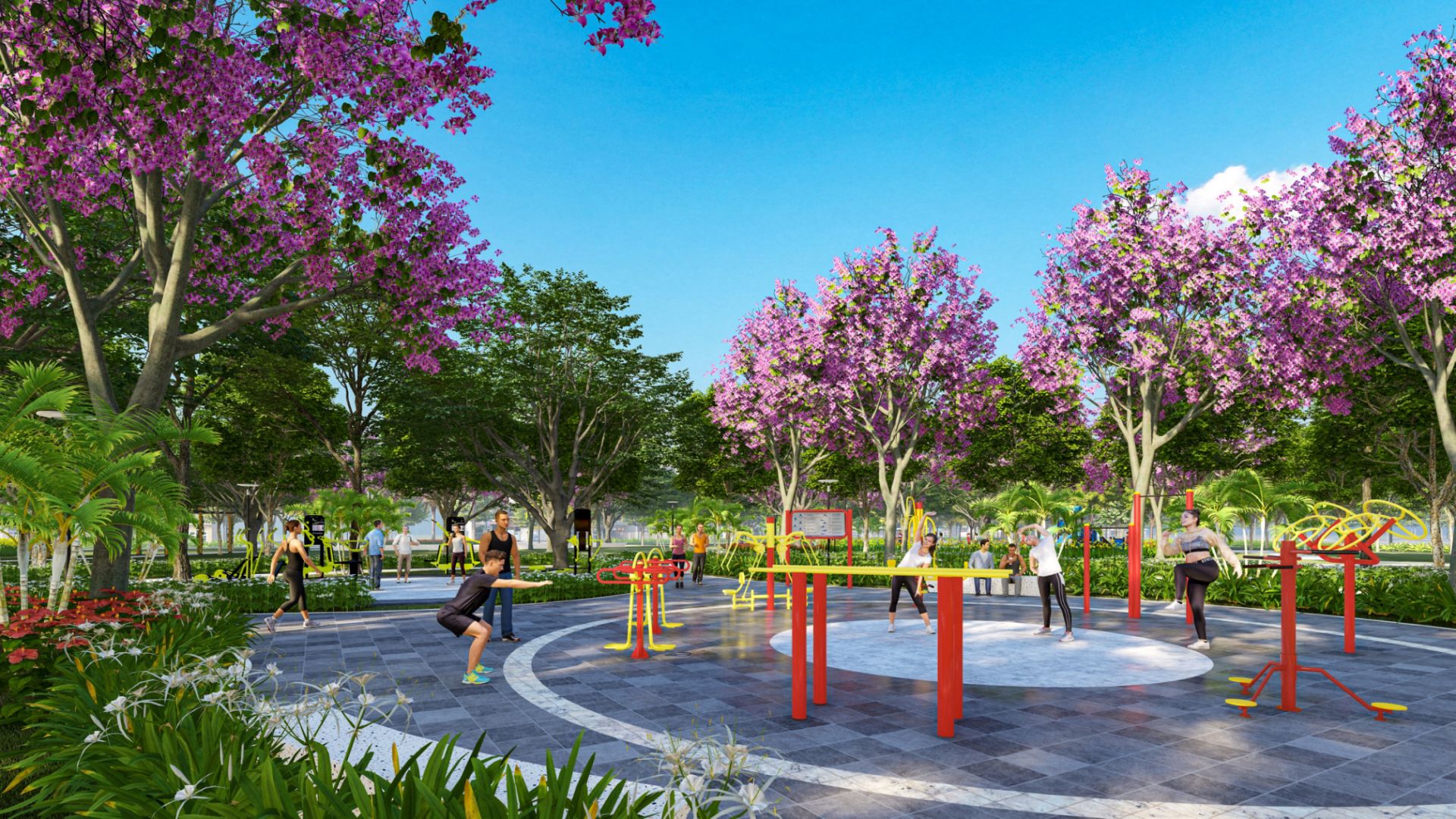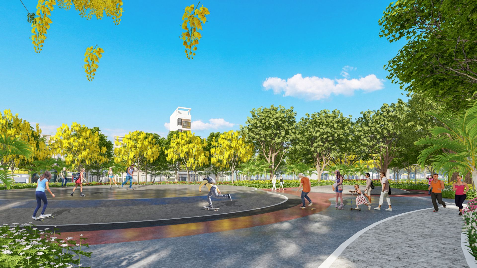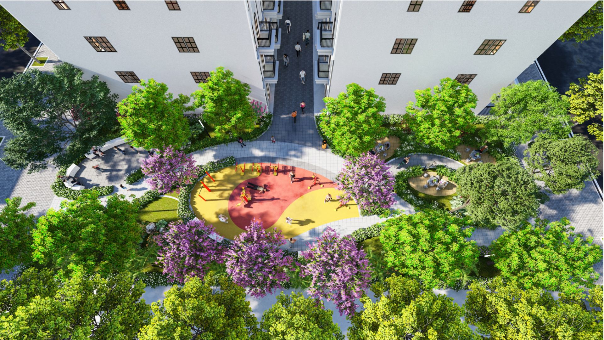 Khu dân cư kép tại xã Hồng Giang là một bản giao hưởng hài hòa giữa màu sắc thiên nhiên rực rỡ và không gian công cộng tiện nghi. Nổi bật với hệ thực vật phong phú, từ những tán cây bằng lăng tím ngắt đến thảm cây hoàng yến vàng tươi, tạo nên các "trục xanh" dẫn lối sống động. Các phân khu được quy hoạch thông minh, tích hợp các tiện ích đa năng như sân tập thể dục ngoài trời, sân trượt patin, và khu vực nghỉ chân thư giãn với hệ thống ghế ngồi tích hợp bồn cây, tất cả đều sử dụng vật liệu lát đường sạch sẽ và bền vững. Lấy con người làm trung tâm, không gian này không chỉ tối ưu hóa trải nghiệm tương tác cộng đồng mà còn mang đến một điểm đến lý tưởng cho cư dân, nơi cuộc sống đô thị hiện đại và cảnh quan thiên nhiên hòa quyện làm một.
