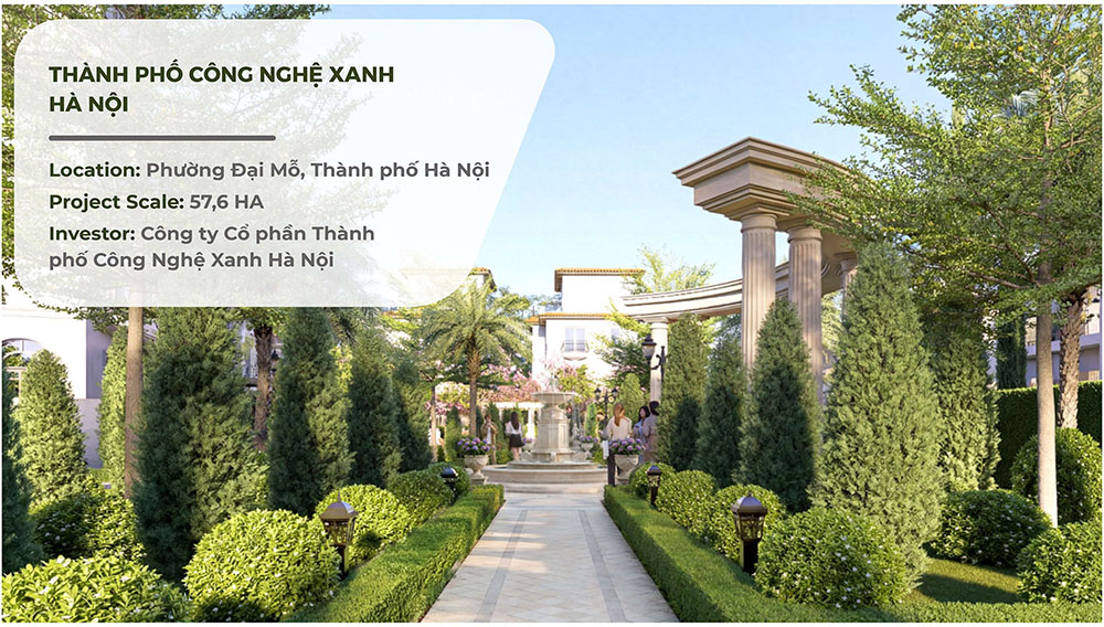 • Chủ đầu tư: Công ty Cổ Phần thành phố Công Nghệ Xanh Hà Nội