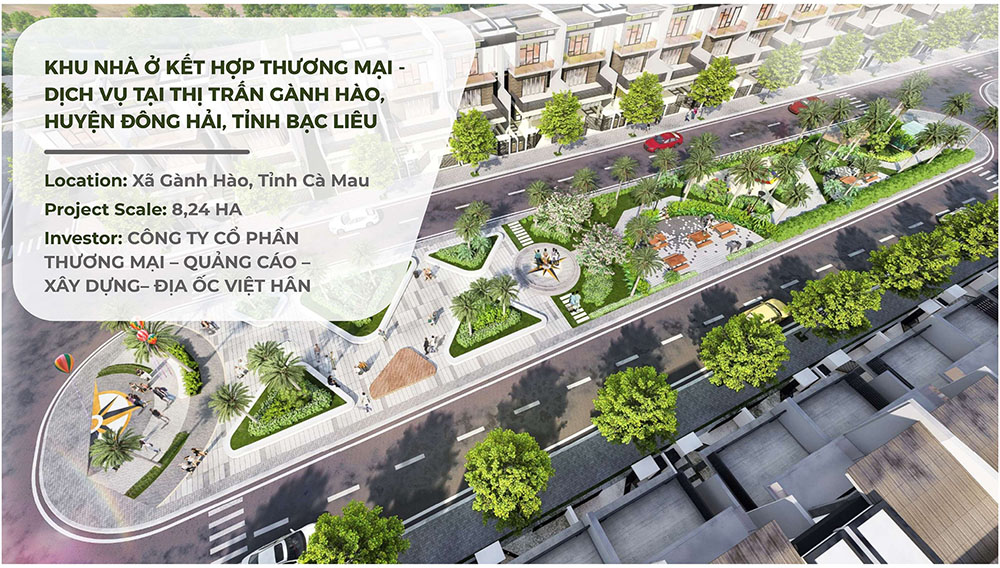 Khu Nhà Ở Kết Hợp Thương Mại – Dịch Vụ Thị Trấn Gành Hào được quy hoạch tại khu vực trung tâm thị trấn Gành Hào, huyện Đông Hải, tỉnh Bạc Liêu, với quy mô khoảng 8,24 ha, định hướng trở thành khu đô thị thương mại – dịch vụ hiện đại, đáp ứng nhu cầu phát triển kinh tế và nâng cao chất lượng sống cho cư dân địa phương. Dự án được phát triển theo mô hình khu nhà ở kết hợp dịch vụ thương mại linh hoạt, tạo nên hệ sinh thái sinh hoạt – kinh doanh – giải trí trong cùng một không gian quy hoạch đồng bộ. Các tuyến đường nội khu được bố trí khoa học, liên kết trực tiếp với hệ thống giao thông khu vực, giúp tối ưu khả năng tiếp cận cho cả cư dân và khách hàng thương mại. Việc phân bổ các dãy nhà phố thương mại, khu nhà ở và không gian công cộng được nghiên cứu kỹ lưỡng nhằm tạo nên một môi trường sống năng động, phù hợp với định hướng phát triển đô thị ven biển của khu vực Gành Hào.