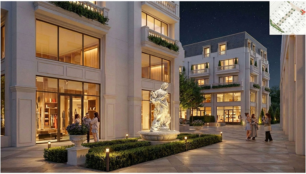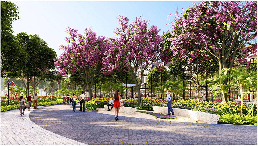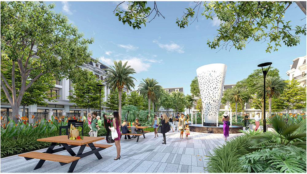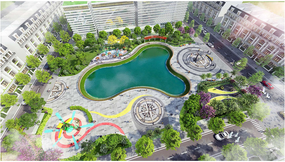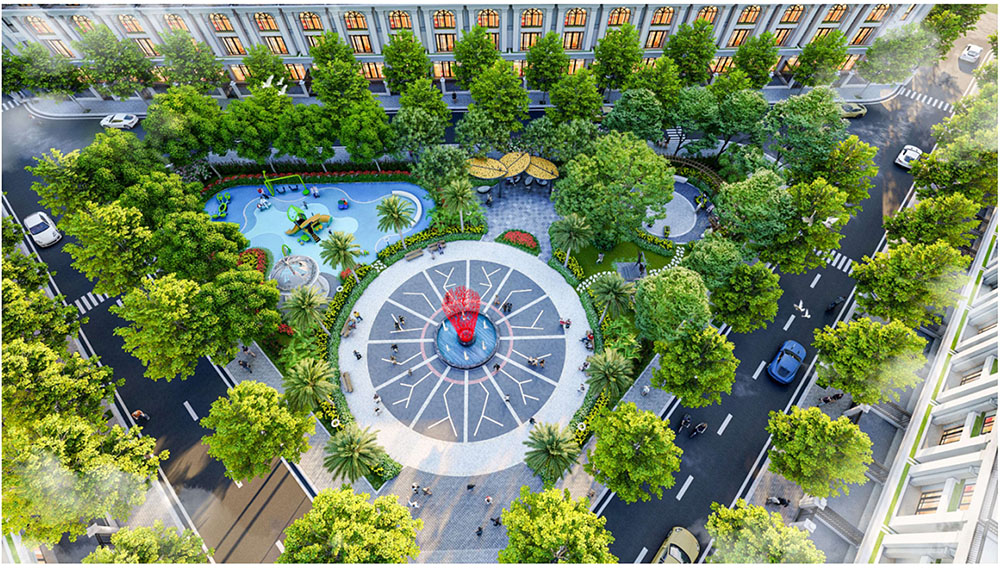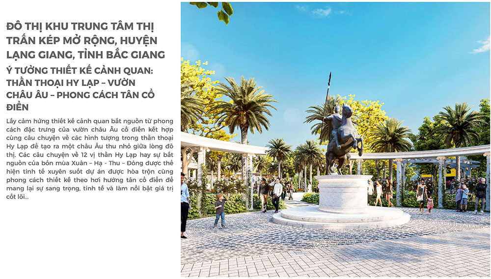 Điểm nhấn nổi bật của dự án nằm ở ý tưởng thiết kế cảnh quan lấy cảm hứng từ thần thoại Hy Lạp và vườn châu Âu cổ điển, được phát triển theo phong cách tân cổ điển sang trọng. Các tuyến đường nội khu, quảng trường và khu vườn được tổ chức theo trục đối xứng đặc trưng của kiến trúc châu Âu, kết hợp hệ thống tượng nghệ thuật, đài phun nước và thảm thực vật được chọn lọc kỹ lưỡng. Câu chuyện về 12 vị thần Hy Lạp và vòng tuần hoàn bốn mùa Xuân – Hạ – Thu – Đông được lồng ghép tinh tế trong thiết kế cảnh quan, tạo nên trải nghiệm thị giác độc đáo và giàu tính biểu tượng. Nhờ sự kết hợp giữa quy hoạch khoa học và ngôn ngữ kiến trúc giàu cảm hứng, dự án không chỉ đáp ứng nhu cầu an cư chất lượng mà còn góp phần nâng tầm diện mạo đô thị, mang đến một không gian sống mang phong cách châu Âu hiện đại ngay tại trung tâm thị trấn Kép.