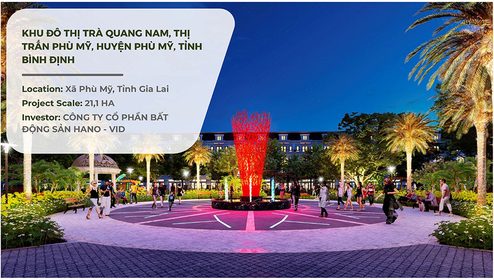 Khu Đô Thị Trà Quang Nam tọa lạc tại thị trấn Phù Mỹ, huyện Phù Mỹ, tỉnh Bình Định, được quy hoạch trên tổng diện tích khoảng 21,1 ha, với định hướng phát triển thành một khu đô thị hiện đại, đồng bộ hạ tầng và giàu bản sắc cảnh quan. Dự án do Công ty Cổ phần Bất động sản Hano – VID làm chủ đầu tư, hướng tới việc hình thành một không gian sống chất lượng cao, kết hợp hài hòa giữa khu ở, tiện ích công cộng và hệ thống cảnh quan sinh thái. Trong quá trình nghiên cứu và phát triển ý tưởng thiết kế, đội ngũ kiến trúc sư và quy hoạch đã đặc biệt chú trọng đến yếu tố kết nối không gian mở, đảm bảo sự thông thoáng, tối ưu tầm nhìn cũng như gia tăng giá trị sống cho cư dân tương lai.