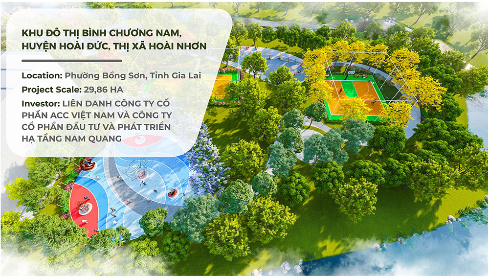 Khu Đô Thị Bình Chương Nam được định hướng phát triển như một không gian đô thị hiện đại kết hợp hài hòa giữa kiến trúc, cảnh quan và tiện ích cộng đồng. Dự án có quy mô khoảng 29,86 ha, tọa lạc tại khu vực Bồng Sơn, thị xã Hoài Nhơn, với sự đầu tư của Liên danh Công ty Cổ phần ACC Việt Nam và Công ty Cổ phần Đầu tư và Phát triển Hạ tầng Nam Quang. Ngay từ giai đoạn quy hoạch, đội ngũ thiết kế đã chú trọng xây dựng một hệ sinh thái đô thị bền vững, nơi cư dân không chỉ sinh sống mà còn tận hưởng những trải nghiệm không gian mở, xanh và giàu tính kết nối cộng đồng. Mặt bằng tổng thể được tổ chức khoa học với các trục giao thông rõ ràng, hệ thống tiện ích phân bổ hợp lý, tạo nên một khu đô thị có tính đồng bộ cao cả về hạ tầng lẫn thẩm mỹ kiến trúc.