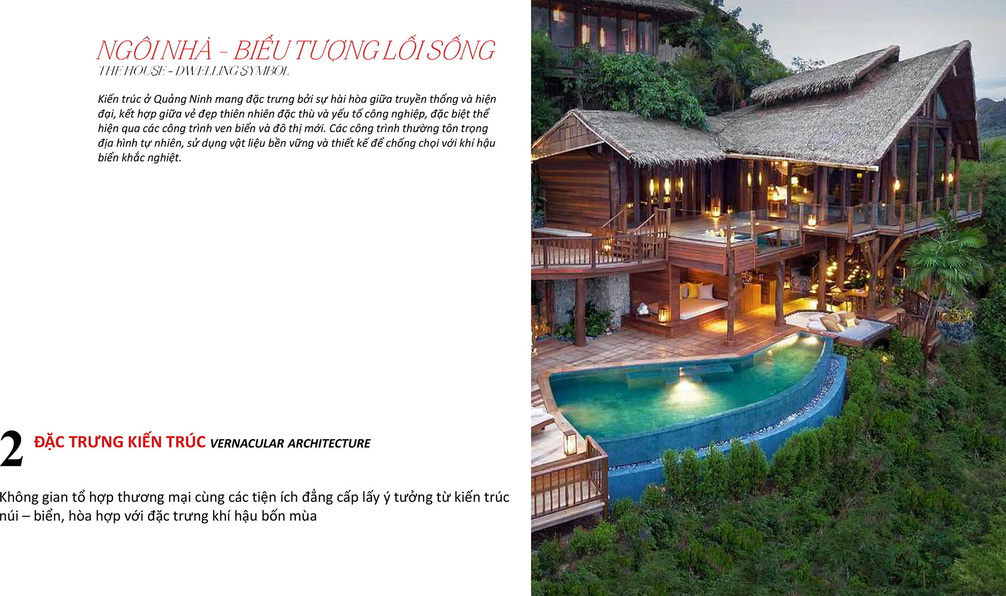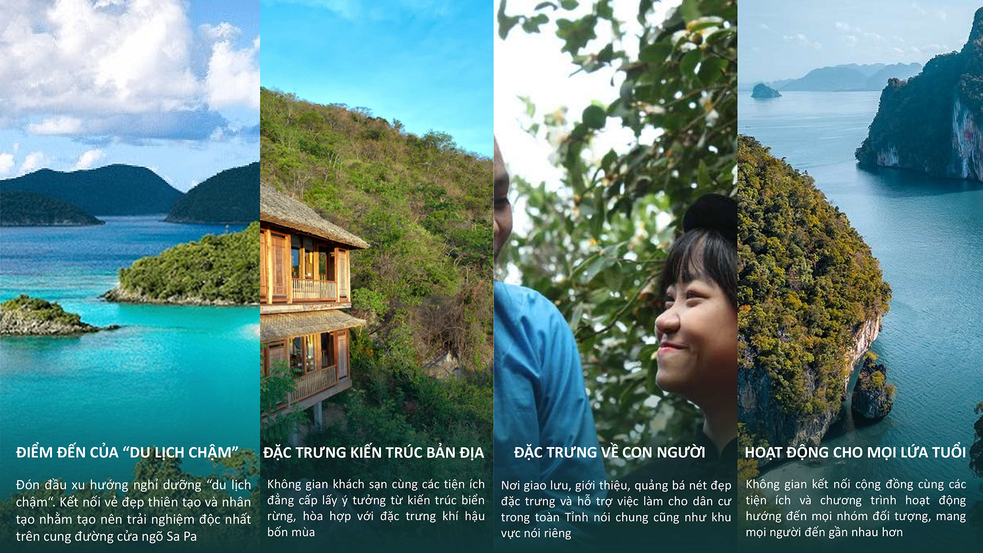 Du lịch chậm khuyến khích du khách lưu trú dài ngày, trải nghiệm sâu văn hóa – thiên nhiên địa phương, từ đó giảm áp lực hạ tầng và hạn chế tác động môi trường do du lịch đại trà. Không gian nghỉ dưỡng được thiết kế để con người hòa mình vào biển trời, tận hưởng nhịp sống thư thái, di chuyển chậm rãi qua các lối dạo sinh thái, tương tác gần gũi với cộng đồng bản địa.