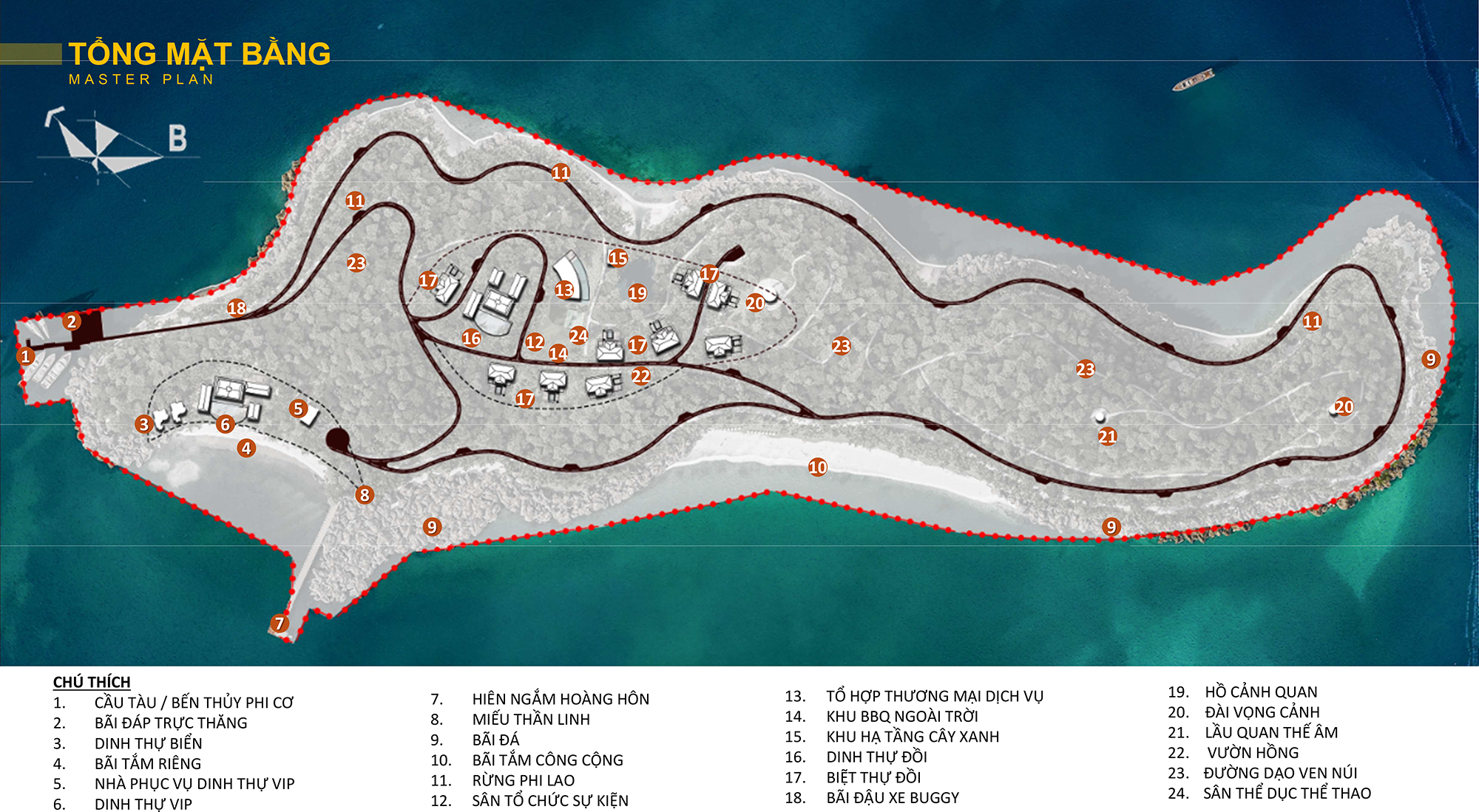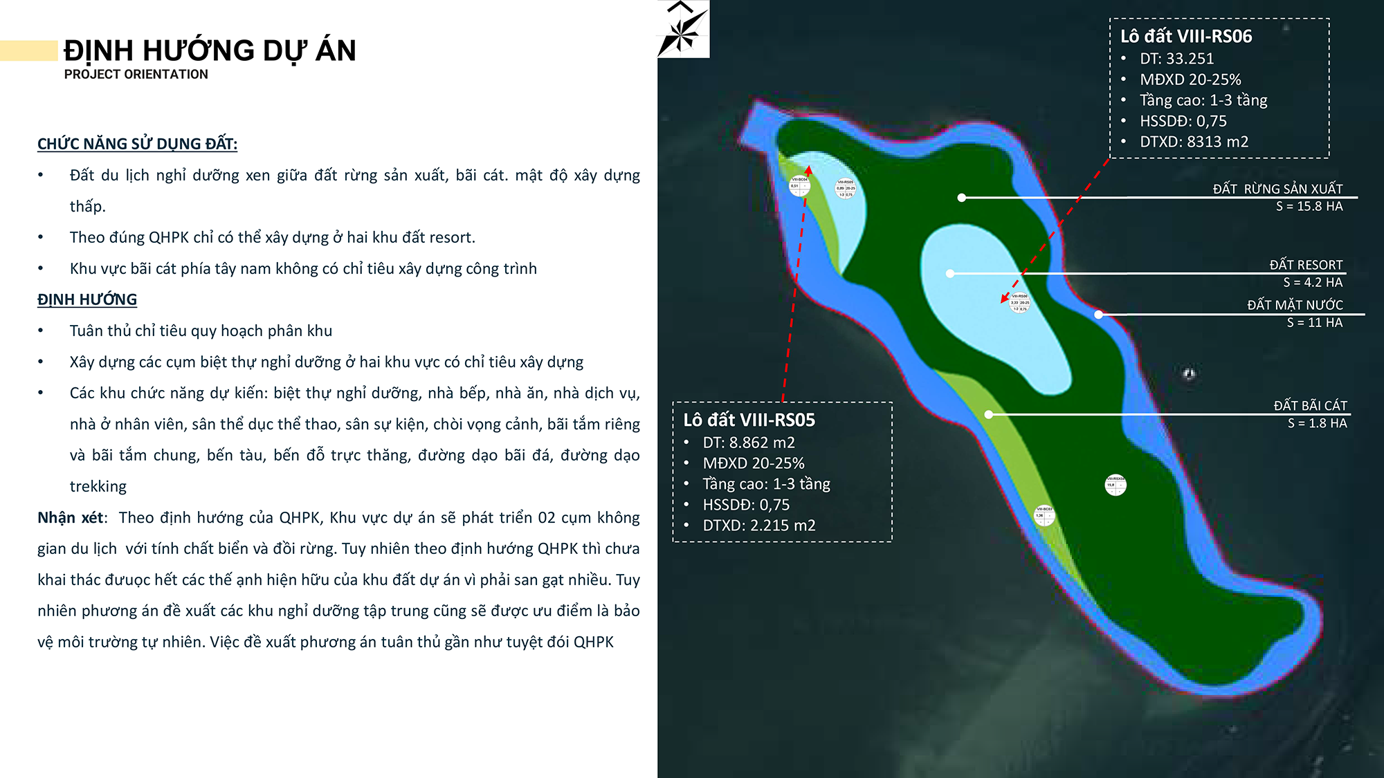 Dự án được quy hoạch theo định hướng phát triển khu nghỉ dưỡng – đô thị sinh thái cao cấp, tích hợp hệ thống dịch vụ và tiện ích đa dạng nhằm đáp ứng trọn vẹn nhu cầu lưu trú, nghỉ dưỡng, vui chơi giải trí và chăm sóc sức khỏe của cư dân cũng như du khách.