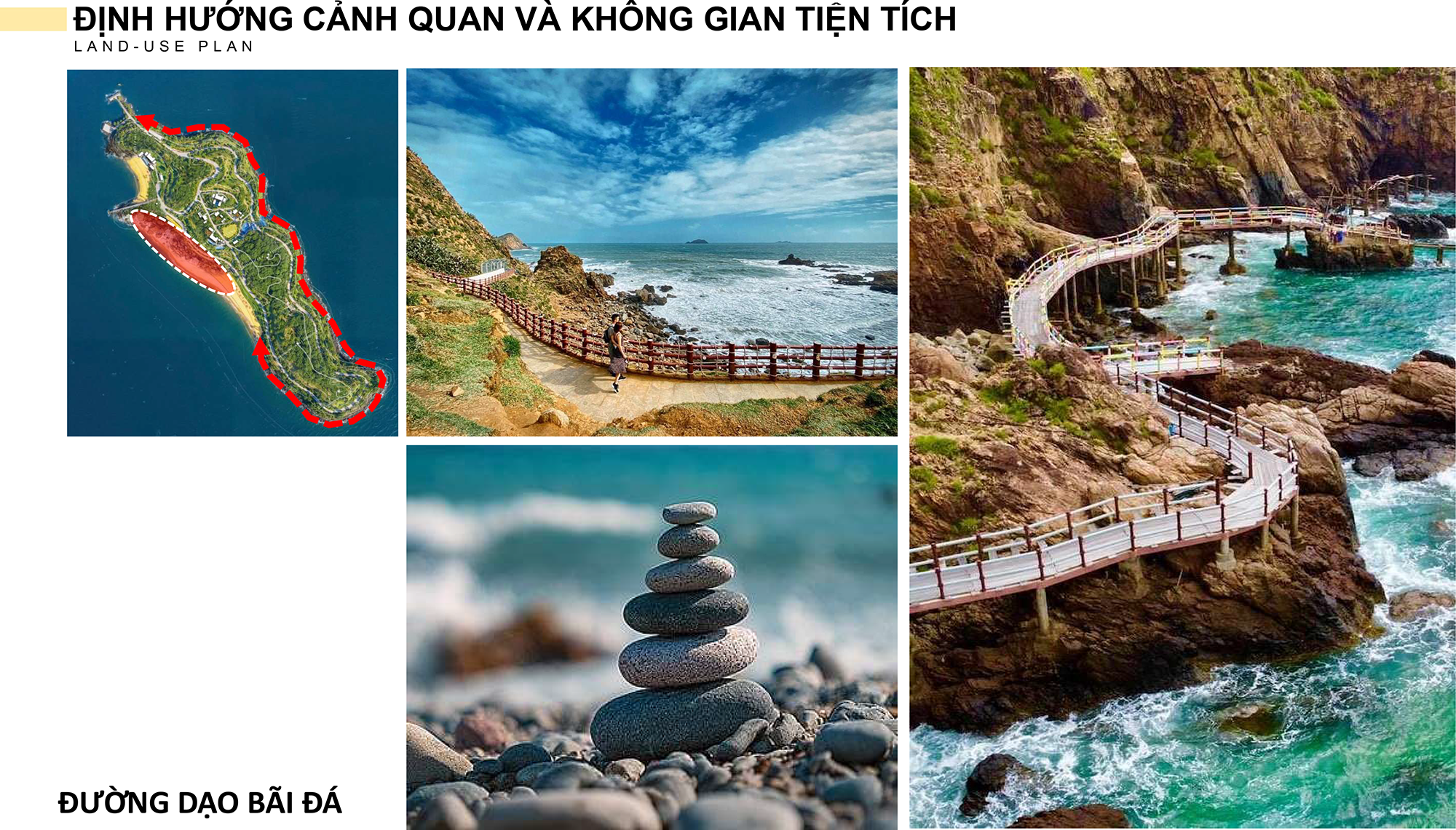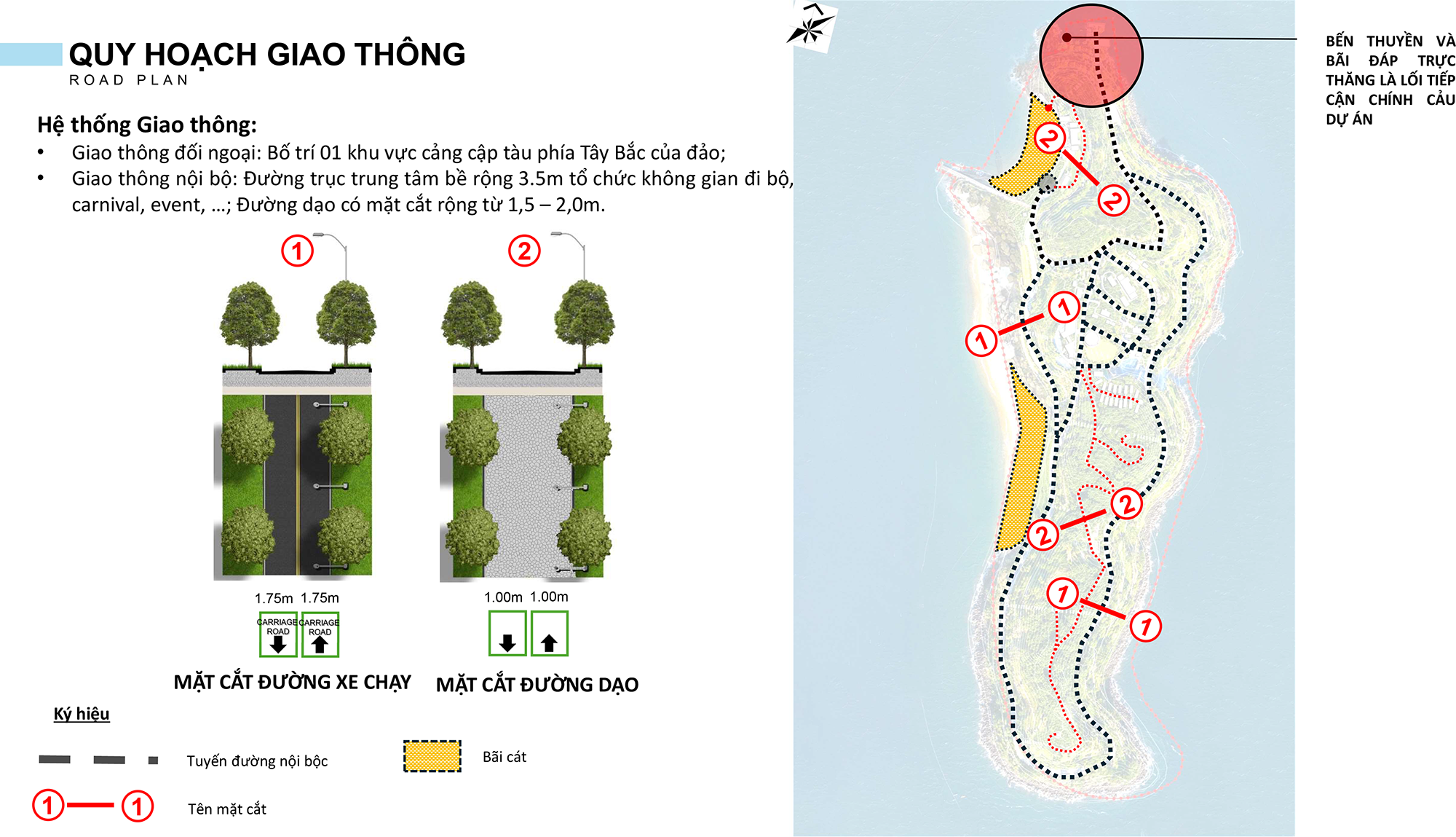 Điểm đặc biệt của chuỗi chức năng là sự liên kết mềm giữa các không gian mở và không gian kín, tạo nên dòng chảy tự nhiên của con người mà không gây xung đột giao thông. Hệ thống giao thông nội bộ được tổ chức theo vòng khép kín, kết hợp lối đi bộ ven biển nhằm tối đa hóa giá trị cảnh quan và tầm nhìn.