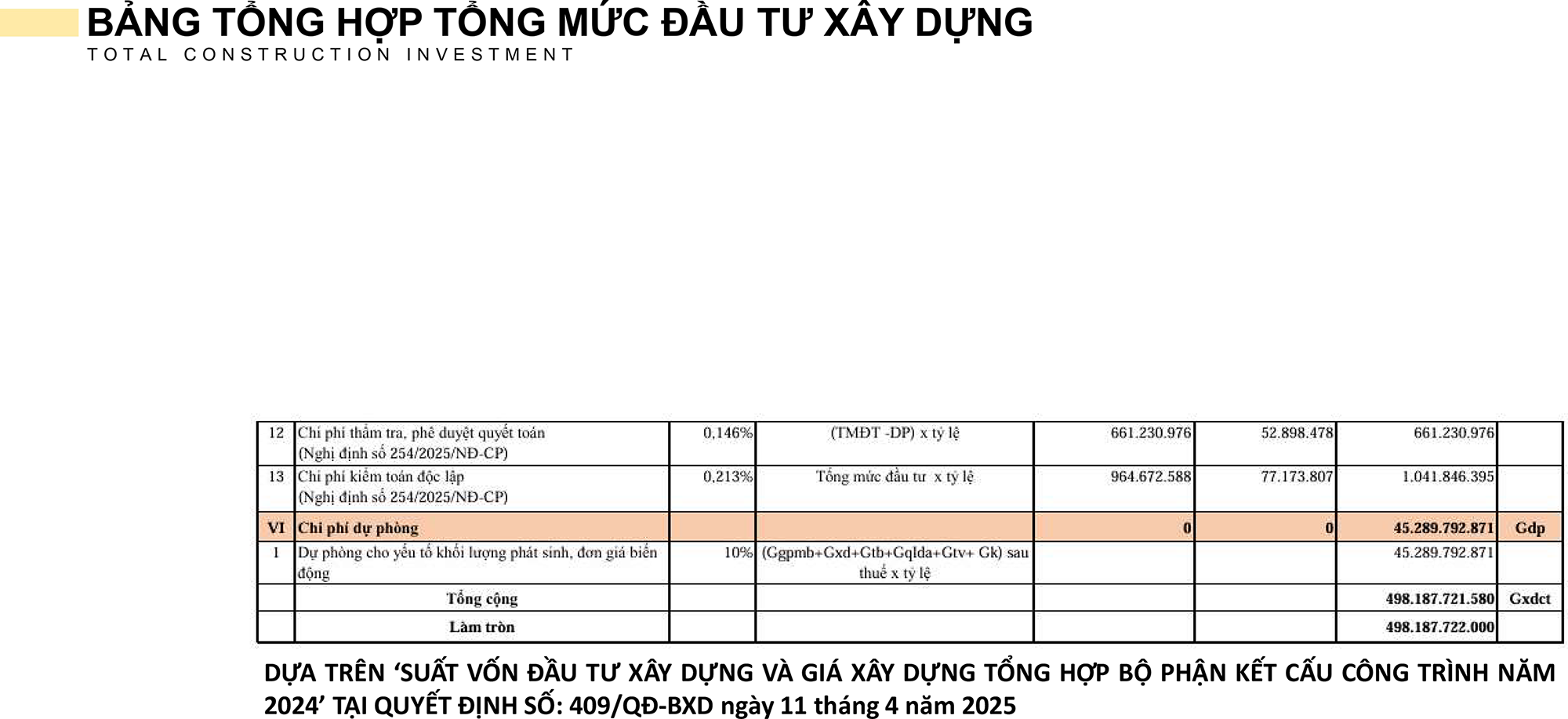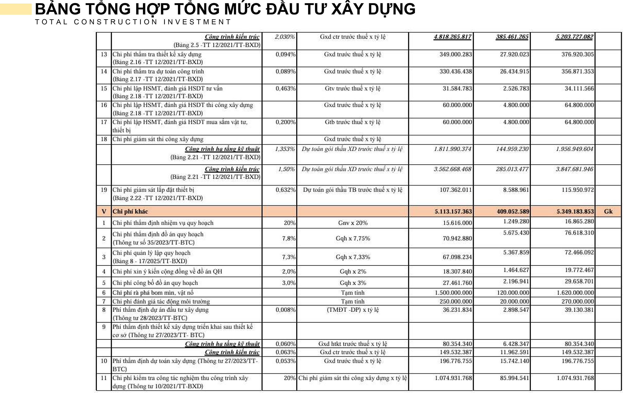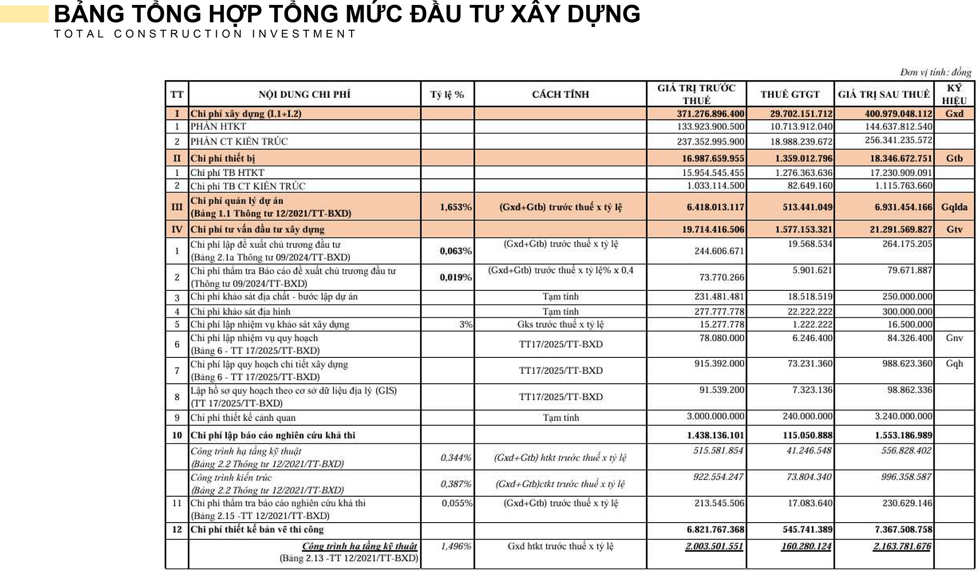 F. TỔNG MỨC ĐẦU TƯ DỰ ÁN