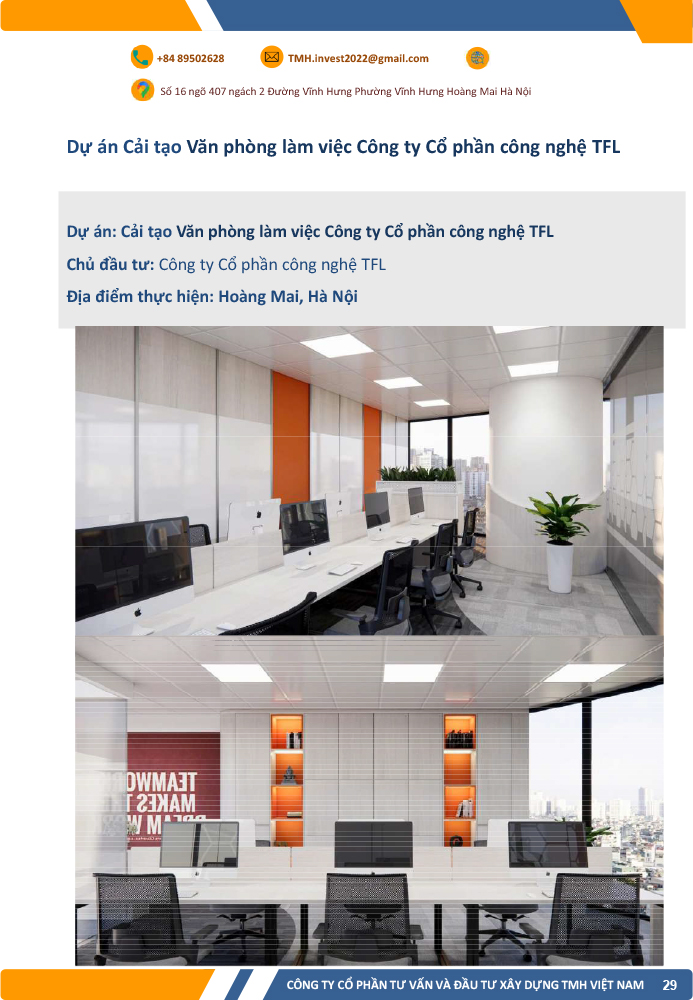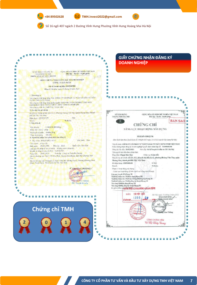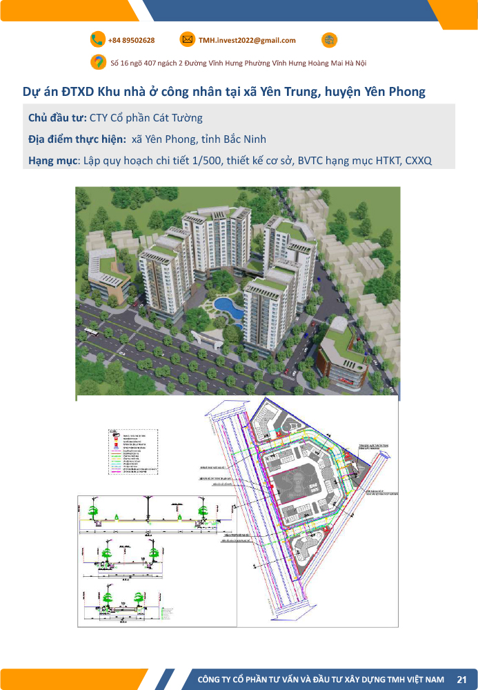 Công ty Cổ phần Tư vấn và Đầu tư Xây dựng TMH Việt Nam (TMH Việt Nam) là đơn vị tư vấn đầu tư và xây dựng có nhiều năm kinh nghiệm trong lĩnh vực thiết kế kiến trúc, lập quy hoạch, thiết kế cảnh quan, hạ tầng kỹ thuật và thi công công trình dân dụng – công nghiệp.