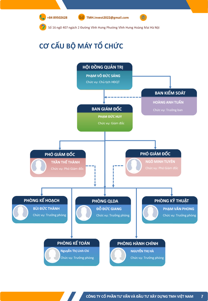 Bộ máy tổ chức của TMH Việt Nam được xây dựng bài bản với đầy đủ các phòng ban chuyên môn: